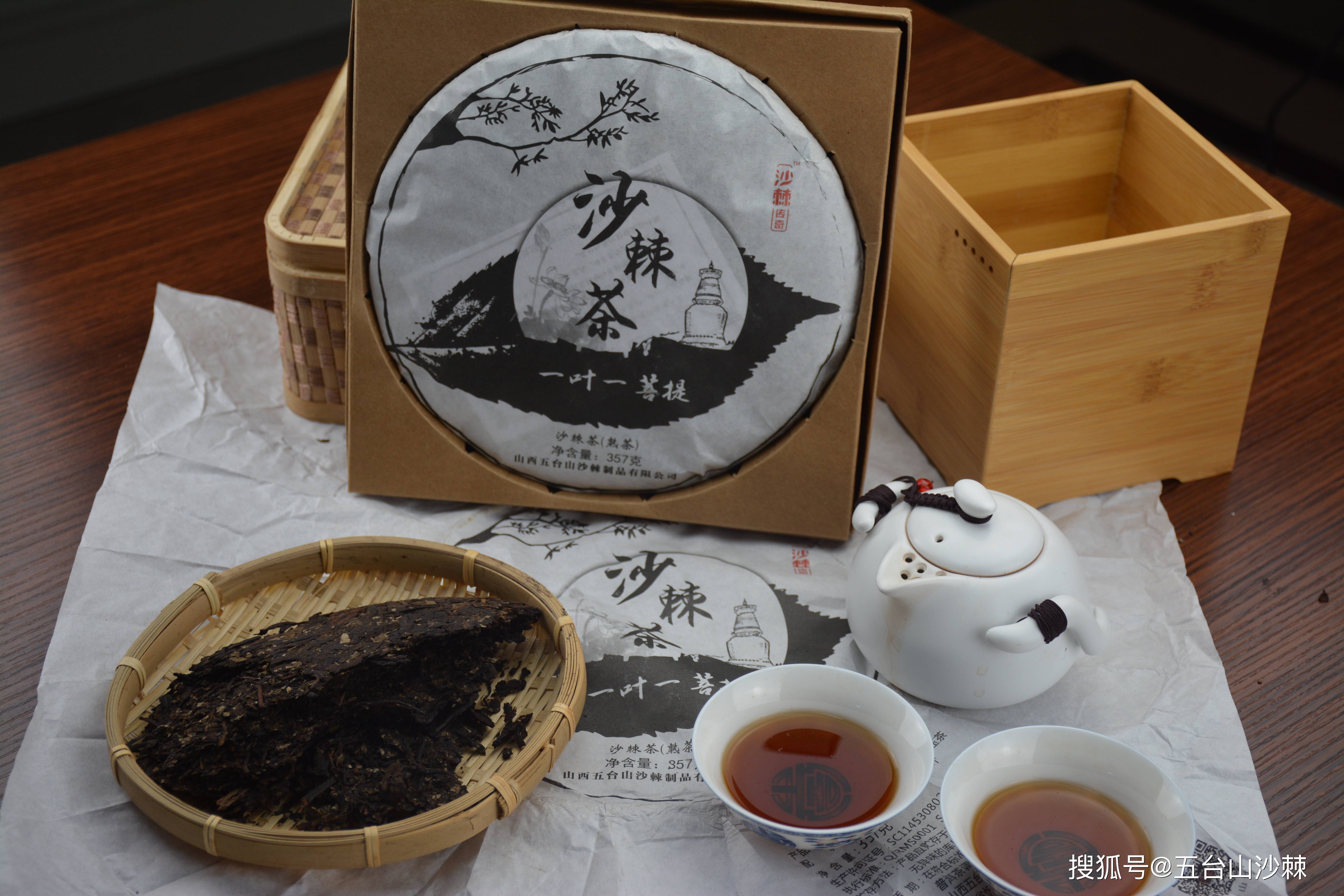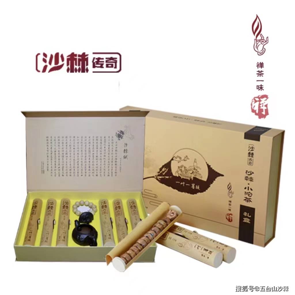沙棘是大自然的天然馈赠,浑身都是宝。它的叶子也富含极其丰富的营养成分和生物活性成份,主要有多糖类、茶多酚、生物碱、氨基酸、类胡萝卜素、叶绿素、叶黄素及维生素和微量元素钙、镁、钾等。而坐落于佛教圣地五台山脚下的山西五台山沙棘制品有限公司,二十六年来,依托丰富的野生沙棘资源,精选五台山鲜嫩的沙棘叶和云南普洱为原料,经过专家两年多的精心研发和实验,得到了最佳的配伍机制。其工艺在传承古法制作基础上,经杀青、揉捻、晒青、渥堆、晾干、压砖等步骤精制而成。茶汤橙红不浊,口感醇厚不涩,香气甘清不粗。